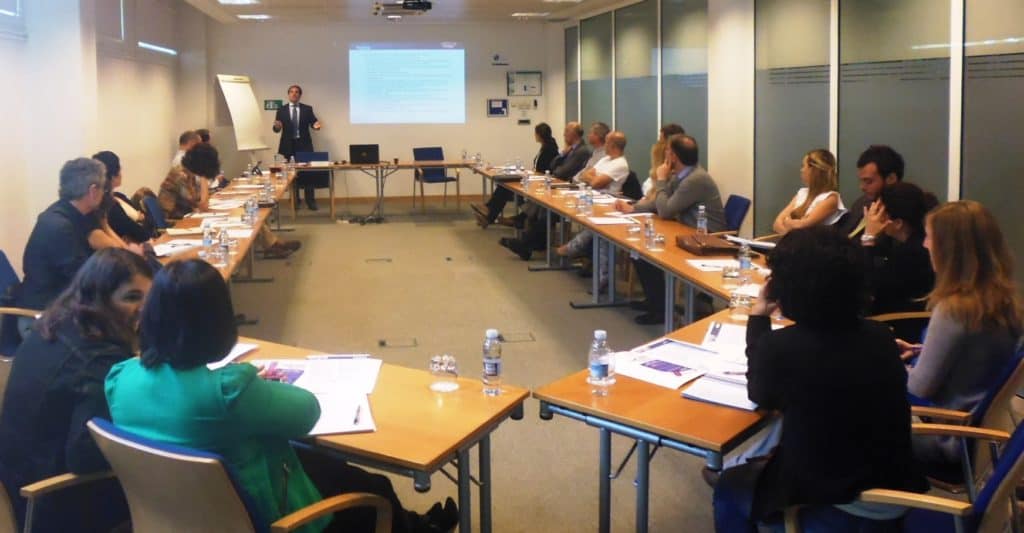 Javier Estevas-Guilmain, Director General de Sapa Placencia, en el taller celebrado el martes 21 de octubre en la sede de ADEGI, “Cómo preparar propuestas exitosas a las nuevas convocatorias de Instrumento PYME”.