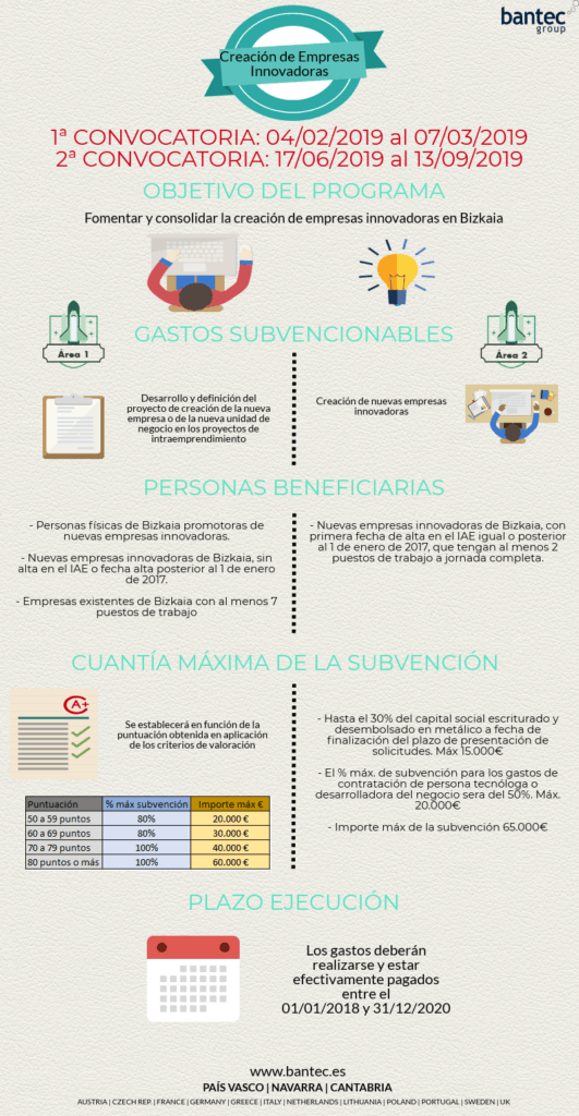 Este 17 de junio de 2019, el departamento de desarrollo económico y territorial de Bizkaia abrirá la 2ª convocatoria del programa Creación Empresas Innovadoras 2019. Con fecha de cierre el 13 de septiembre de 2019. Este programa tiene como objetivo fomentar y consolidar la creación de empresas innovadoras en Bizkaia. El programa diferencia dos áreas […]